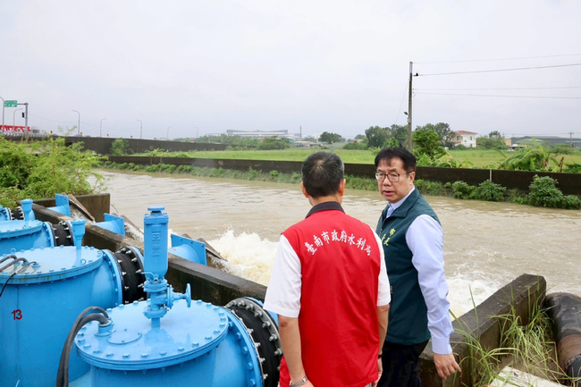 (中央社記者楊思瑞台南3日電)台南部分地區在昨天強降雨後積淹水,市府統計昨晚大部分積水消退後,至今天早上未再出現積淹水。台南市長黃偉哲上午前往安定區下洲子抽水站視察,強調將再精進防洪設施。