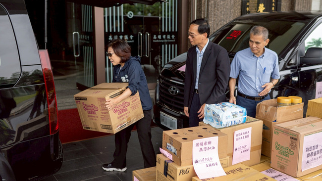 經確認,山區較缺乏嬰兒奶粉與尿布等物資,康裕成隨即指揮議會團隊洽詢各大藥局與百貨通路採購所需物資,今天一早將一箱箱物資裝車出發運送至災區。