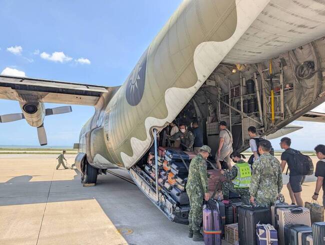 金門航空站上午公布軍方將投入軍機載運旅客飛往高雄,航空站與軍方上午10時30分開始進行軍機疏運叫號,遊覽車將70名旅客載至機場後,中午12時許第1架軍機飛往高雄。