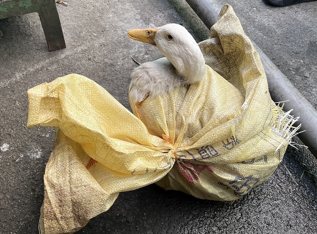 員警依循車牌號碼,找到當事移工,打開黃色袋子後發現裡頭裝著1隻鴨子;移工向員警表示是自己要食用。