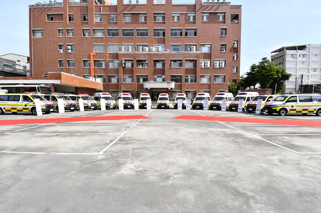 王惠美致詞時說,13輛救護車中有8輛為高頂救護車,每輛造價新台幣370萬元,其餘5輛為平頂救護車,每輛造價320萬元。新車採最新的「巴騰堡格紋」反光設計,能有效提高能見度。