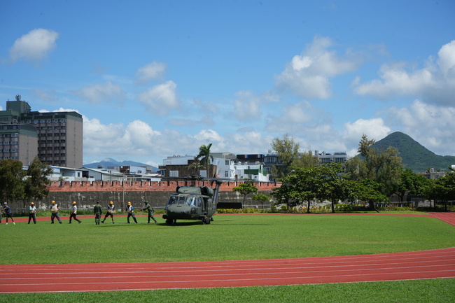 演習假想恆春部分道路中斷,形成孤島區域。國軍出動UH-60M黑鷹直升機載運物資,降落在恆春國小操場,由防災協作中心志工協助作業,將乾糧、帳篷與醫療用品等物資傳遞至活動中心。