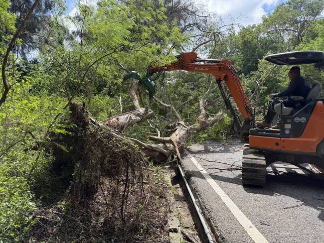 金門縣林務所表示,截至目前接獲2件倒樹案,派出6人及鏈鋸、怪手、貨車等機具清除倒伏樹木,目前已完成清除公園路榕樹倒伏、中心教練場附近鳳凰木倒伏,後續將巡查其他路段,安排2組人力預作準備,並視風勢狀況調度人力機具處理。
