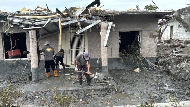 無黨籍花蓮縣議員簡智隆說,前2天送物資時發現東富村一帶災情嚴重,且救援人力有限,便聯繫屏東、花蓮在地的公益團體或工程廠商,帶著重機具前往進駐,預計停留5天協助清除大型堆積物。