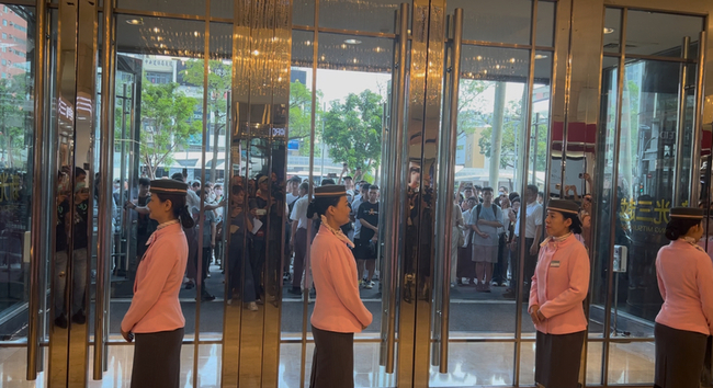 在大門前等候進場的余姓民眾表示,她住附近,原本日常食衣住行都在這裡,以前幾乎每週都來,很期待新光復業,不然吃飯及看電影都不方便,復業後晚餐就有著落,她今天是要來買手機的。