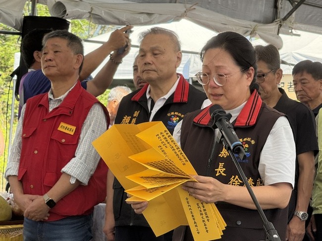 花蓮縣長徐榛蔚在現場帶領家屬代表進行法會儀式,有家屬在現場大喊:「家屬代表在這裡,她(徐榛蔚)一來就圍著她在那邊拍什麼?在前面擺拍就可以是不是?」
