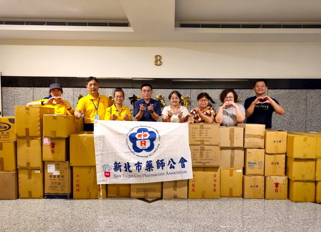 新北市藥師公會告訴中央社記者,募集藥界個人與團體捐助的善款,提供醫藥護理包(護你包),盼降低災民與救災志工的健康風險。
