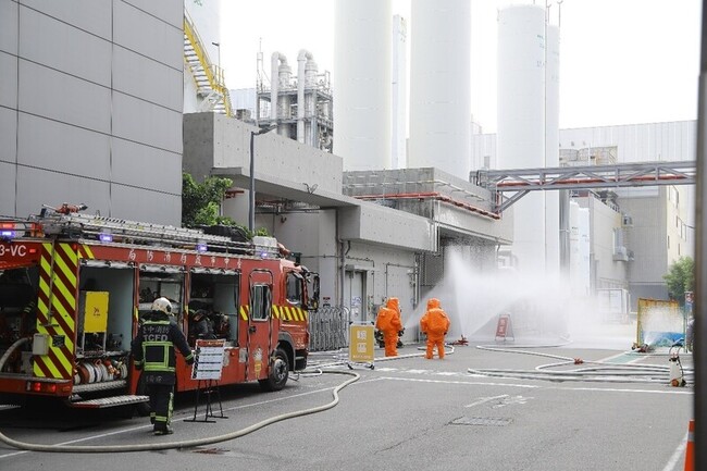 中科管理局表示,各單位依程序執行通報與現場管制、消防搶救、毒化物偵檢與止漏、除污分流、緊急醫療及疏散避難等作業,驗證園區整體聯防運作機制。