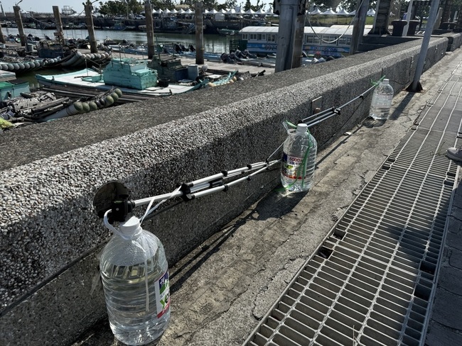 文觀局告訴中央社記者,為了維護漁港的作業環境及保持活動救護動線順暢,公布1日至7日禁止以腳架等器具占位,違者將予以清除。今天派員到東石碼頭視察,發現很多人不顧公告,用腳架占位,還綁上水桶,已全數清除。