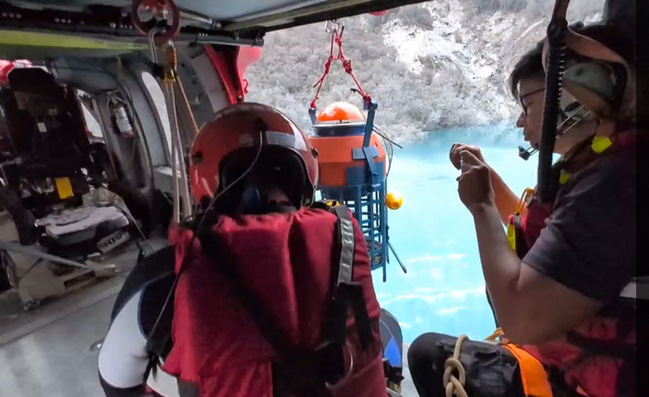 (中央社記者李先鳳花蓮20日電)日本贈送的「投入式(浮標型)水位計」,昨天由空勤總隊直升機搭載成大防災研究中心與特搜隊人員,在馬太鞍溪堰塞湖面投放成功,並立即回傳水位資料,有助於預警與防災決策。