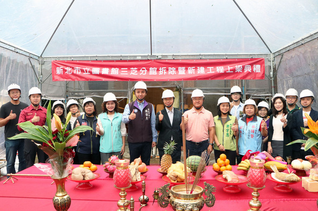 新北市立圖書館新聞稿指出,位於北海岸的新北市立圖書館三芝分館,因建物老舊、結構體老化,為維護讀者閱讀安全於原址拆除重建,去年8月開工。經1年多的施工,今天舉行上梁儀式,象徵工程邁入新里程碑,預計明年下半年完工啟用,成為北海岸全齡友善的閱讀新據點。