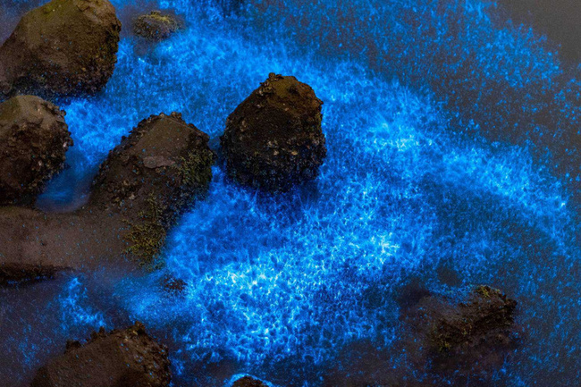 「藍眼淚」是夜光藻經波動而發出藍色螢光自然景觀,將軍區青山漁港及將軍漁港南岸一帶海面在2023年曾出現,近日於附近海面再次出現,同樣湧進不少遊客。(編輯:謝雅竹)1141027