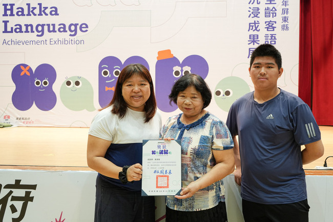 (中央社記者黃郁菁屏東縣9日電)屏縣府推動客語復振與發展,從家庭、社區、學校等不同領域規劃推廣措施,打造全齡客語沉浸系統,今天在縣府大禮堂成果展;受表揚客語模範家庭,也分享重拾母語過程。
