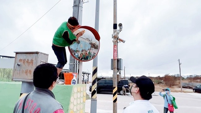 (中央社澎湖縣9日電)馬公市公所與澎湖國際青年商會今天聯手清潔道路反光鏡,讓城市更亮、用路更安全,推動安全城市與社區共榮。