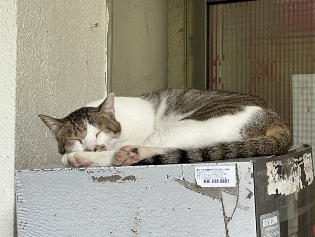 台中市和平警分局大棟派出所位處和平山區,四周環境靜謐,走進派出所內,定睛一看發現飲水機上躺了一隻白色貓咪,另頭圍牆邊還有一隻橘貓,另外一隻花貓蜷縮在花盆中。