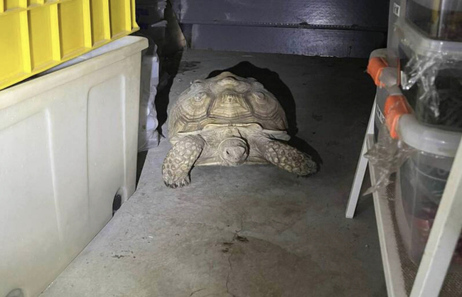 (中央社記者吳哲豪彰化15日電)彰化市有民眾發現飼養的巨型蘇卡達陸龜從家中花園走失,急著在臉書貼文請網友協尋,不過昨天聽到住家倉庫發出聲響,才發現陸龜就在裡面,懷疑是倉庫門沒關好,讓陸龜跑進去。