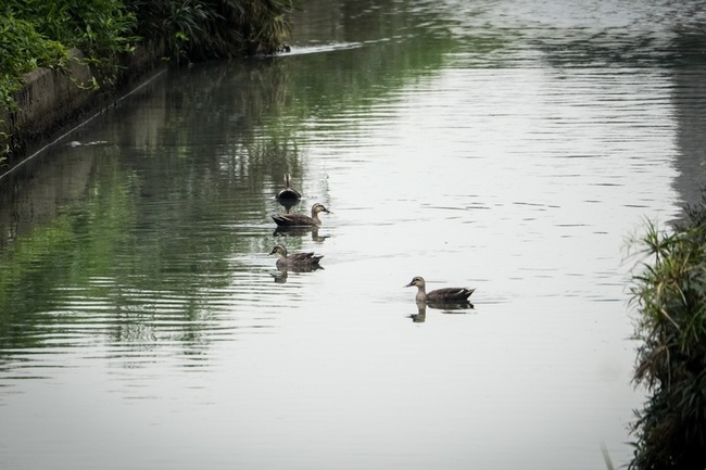 (中央社記者曹亞沿新北9日電)野生候鳥花嘴鴨再度現蹤新北板橋湳仔溝,民眾驚喜。水利局今天表示,花嘴鴨連2年成群報到,顯示湳仔溝成功告別臭名,從髒亂的「新北四大黑龍江」蛻變為豐富的生態廊道。