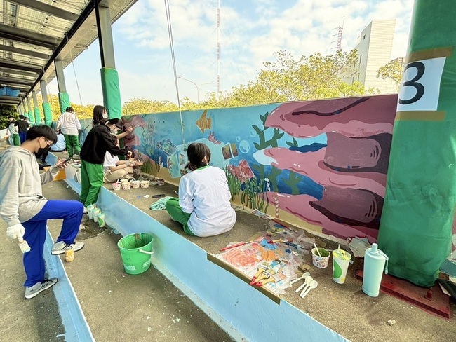 校方表示,彩繪鼓山游泳池活動由鼓山游泳池協力舉辦,虹牌油漆、易增工程有限公司、內惟國小家長委員會,以及有間藝廊等單位支持,並由鼓山高中美術班負責執行,展現產官學社區攜手合作的教育實踐成果。