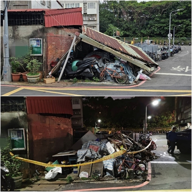 建管處今天表示,受極端氣候影響,颱風或強降雨後常有建物因維護不當而導致意外,114年經通報發現有搖搖欲墜、影響公安或已廢棄朽壞之鐵架等違建計1883件,建管處皆立即至現場執行拆除,以降低市民生命與財產受損的風險。