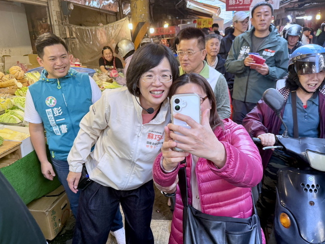 民進黨新北市長參選人蘇巧慧,今天在民進黨新北市議員廖宜琨等人陪同下,於樹林區保安市場、博愛市場掃街拜票。她接受聯訪時表示,適逢情人節,所以到樹林區向栽培她的樹林鄉親拜早年,祝福大家情人節快樂、新年快樂。