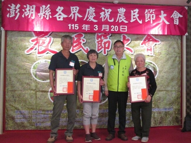 澎湖各界慶祝115年農民節大會今天舉行,農會理事長陳天想、澎湖縣政府參議王國裕、議長陳毓仁、高雄區農業改良場長羅正宗及農漁局長陳高樑等人出席,並表揚各農政單位推薦的模範農民,也慰勉農民一年來的辛勤付出。