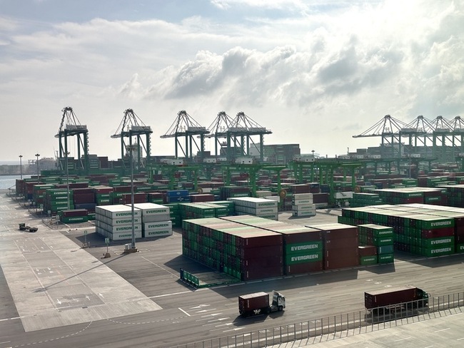 數發部長黃彥男今天率隊前往高雄港,參訪長榮第七貨櫃中心。過往貨櫃中心都是操作員在高空操作橋式機來裝卸貨櫃,需要長時間低頭來操作、移動貨櫃,如今導入5G專網,成功應用在貨櫃場自動化營運,裝卸貨櫃也可以很智慧。