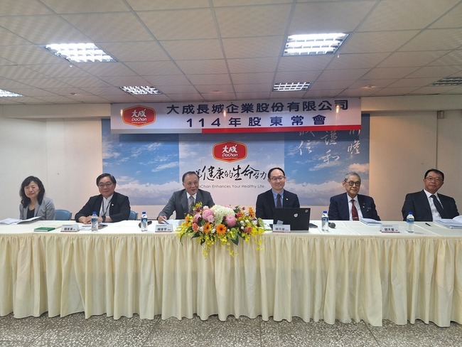 大成今天召開股東會通過2024年財報,並決議配發現金股利2.8元。韓家宇指出,2024年獲利雖不如2023年創下歷年新高,但仍創下歷年次高紀錄,因大宗物資價格下滑、肉品行情不佳,影響獲利表現。