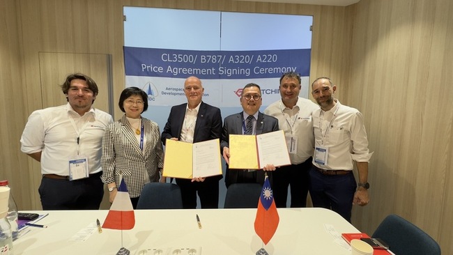 簽約儀式由漢翔物料處長林欣志及JPR公司副總經理哈烏(Herve Raoult)代表,在漢翔副總經理莊秀美見證下完成簽署。