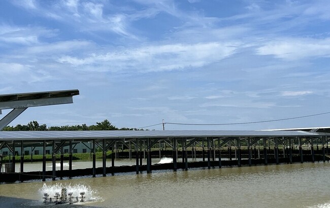 不過,阿蓮崙仔頂段光電案場的屋外型光電設施不同,葉吉田說,屋外型太陽能板是蓋在魚塭堤岸旁,魚塭在中間完全不受影響,且覆蓋面積只占40%,不阻礙陽光及空氣流通,甚至太陽能板的些許陰影還可以幫忙降低水溫,「對養殖魚蝦更有幫助」。