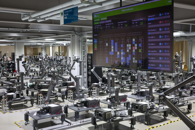 引領採訪團隊一覽測試產線全貌的達明公關解釋,協作機器人測試是24小時不間斷運作,以確認在客戶產線實際操作的耐久能力;在測試現場,達明自製的監控平台,可即時掌握產品測試的良率結果,相關測試數據提供資料庫進行大數據分析,作為智慧製造和產線管理的依據。