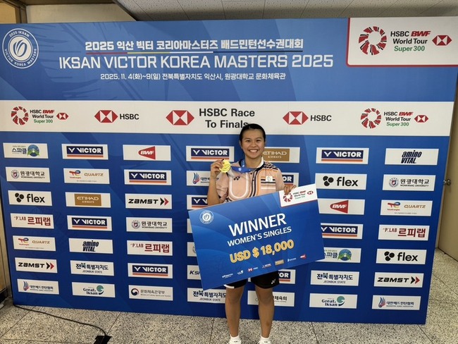 (中央社記者曾智怡台北10日電)台電女子羽球隊、女單好手邱品蒨在南韓大師賽(Super 300等級)中勇奪女單冠軍,摘下個人生涯首座BWF超級賽冠軍獎盃,這是台灣羽壇自「世界球后」戴資穎之後,再度有女單選手於超級300以上的比賽封后。