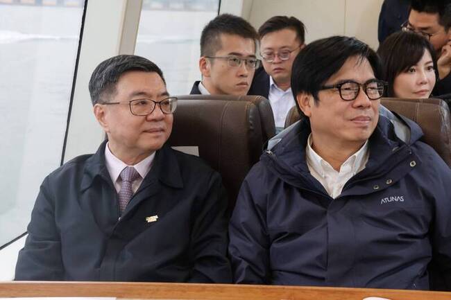 卓榮泰今天在行政院副院長鄭麗君、經濟部長郭智輝、行政院發言人李慧芝,以及高雄市長陳其邁、高雄市經發局長廖泰翔等人陪同下,視察高雄亞洲新灣區並聽取規劃進度。