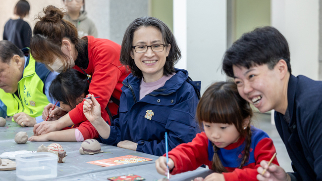 隨後,副總統親手體驗捏陶及繪製平安龜,並與現場兒童溫馨互動,現場氣氛熱絡。(編輯:翟思嘉)1140121