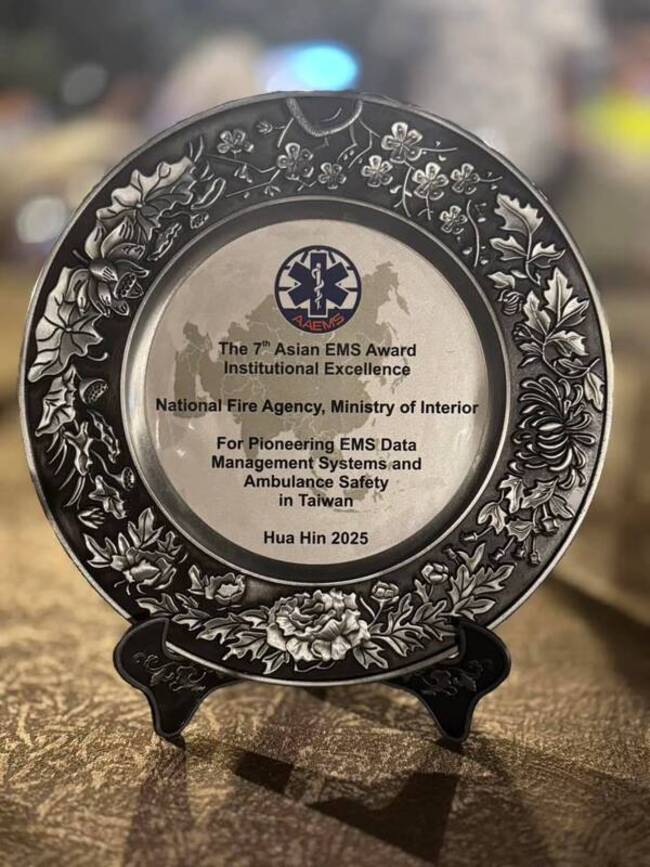 內政部說,消防署因此跨機構合作推動「救急救難一站通推動計畫」,攜手衛福部、國家災害防救科技中心(NCDR)共同合作的成果,成功整合全國22縣市消防局、10種EMS系統,建立完整的救護資料交換平台,讓EMS服務更即時、更準確,提升台灣整體救護服務品質,計畫除榮獲國家發展委員會第7屆「政府服務獎」,今年更榮獲「亞洲緊急醫療救護協會機構獎(AAEMS Institutional Award)」。