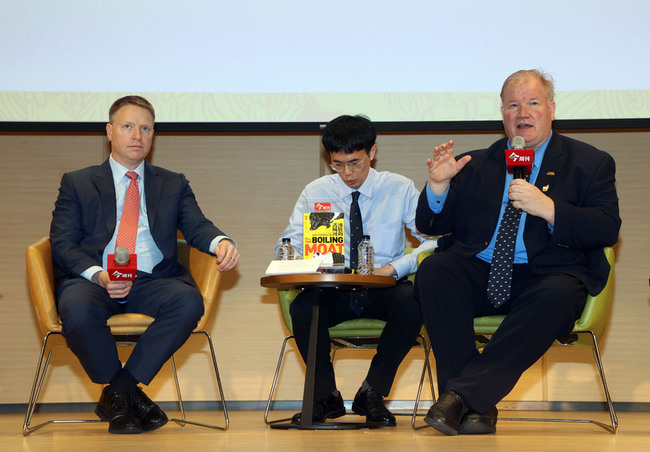 今周刊今天下午在政大公企中心舉行「沸騰的護城河」新書發表座談會,作者、美國前白宮副國家安全顧問博明(Matt Pottinger)以及共同作者、美國海軍退役少將蒙哥馬利(Mark Montgomery)出席座談。