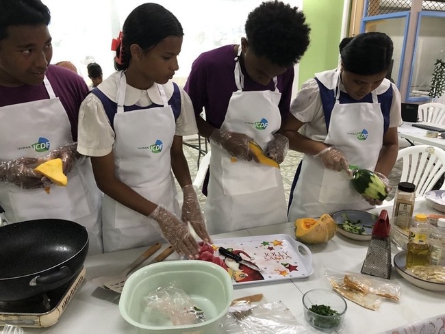 國合會說明,「小學生蔬菜烹飪比賽」食材皆為國合會技術團輔導栽種,由校園菜圃提供茄子、小白菜,技術團經營的蘿拉農場(Laura Farm)提供小番茄、胡瓜、空心菜、秋葵等各色蔬菜,鼓勵學生發揮創意,動手烹煮出富有馬紹爾特色的營養料理。