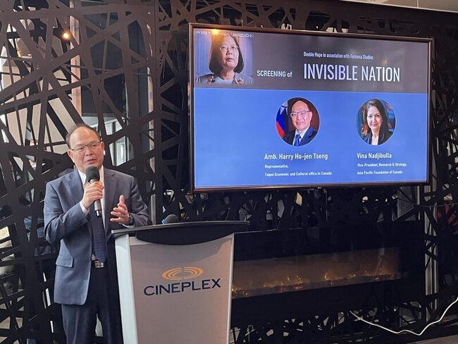 (中央社記者胡玉立多倫多28日專電)駐加拿大代表處今天在渥太華舉辦「看不見的國家」紀錄片放映會,駐加代表曾厚仁向在場逾百位加國友人和各國使節表示,台灣鑑往知來,深知實力帶來和平,他呼籲民主國家更加團結以面對當前威權主義脅迫。