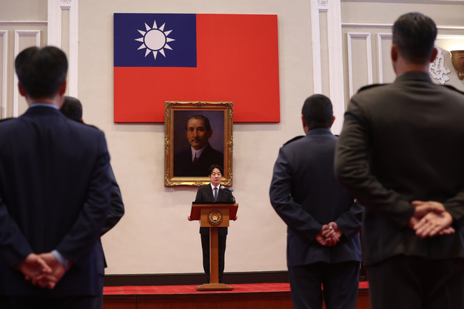 總統表示,面對威權勢力的集結與合流,以及中共日益增強的灰色地帶侵擾,必須要運用不對稱思維及堅強的軍事實力,展現自我防衛的決心,守護台灣的民主自由,讓區域和平穩定、繁榮發展。