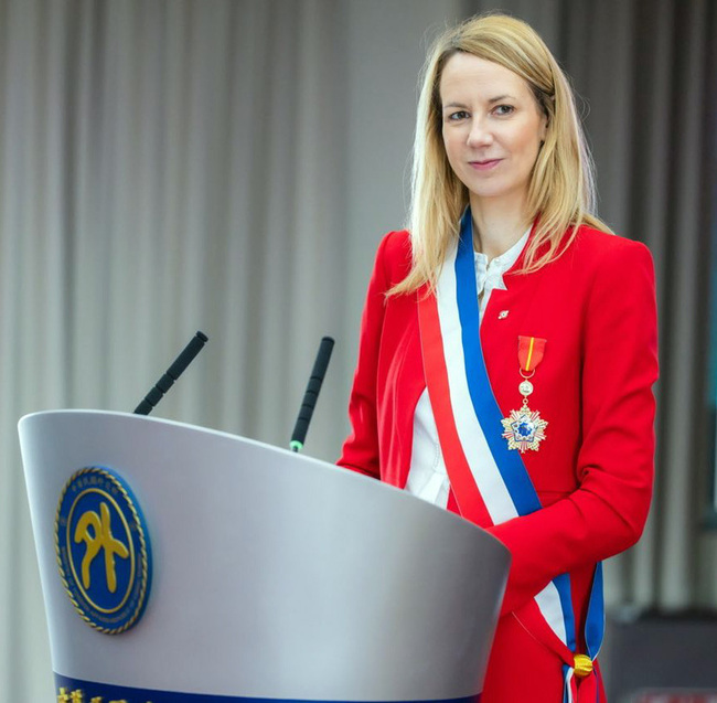 外交部今天發布新聞稿指出,林佳龍上午在外交部大禮堂頒贈「睦誼外交獎章」予法國勒瓦盧瓦市(Levallois)市長杜馬(Agnès Pottier-Dumas,另譯杜瑪)。