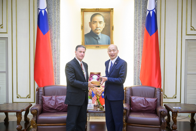 韓國瑜表示,立法院內三黨一致支持強化國防預算,期盼台美攜手合作、心手相連,共同維護印太地區的和平與安全。