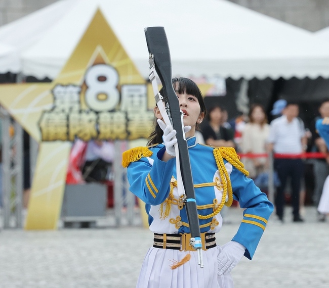(中央社記者吳書緯台北24日電)國防部第8屆全國高級中等學校儀隊競賽決賽今天舉行,來自全國各地9所學校齊聚兩廳院廣場一較高下,參賽學生不畏陰雨綿綿賣力展現青春活力,最終由港明高中拿下冠軍,明道中學、高雄女中分居第2名與第3名。