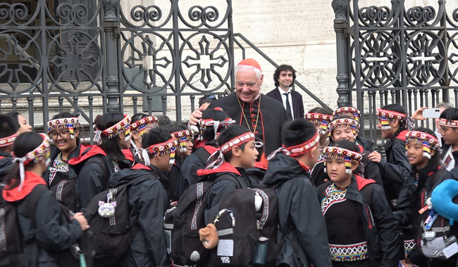 駐教廷使館在臉書直播,來自梵蒂岡聖伯多祿廣場的最新情況,「原聲童聲合唱團」上午參加教宗良十四世公開接見活動,驚喜獲得這個快閃演唱的機會,原住民兒童熱情演唱「拍手歌」(kipahpah ima),全場信徒跟著鼓掌,場面熱烈。