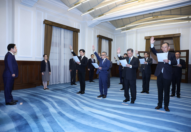 宣誓人員還包括,駐瑞士大使王思為、駐韓國大使丘高偉、駐印度大使陳牧民、銓敘部政務次長懷敍、行政院人事行政總處副人事長張秋元、駐捷克大使陳立國、駐泰國大使藍夏禮、駐聖克里斯多福及尼維斯大使陶令文。(編輯:謝佳珍)1140623