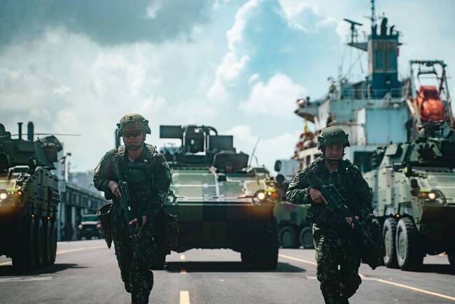 負責戍守南台灣的第四作戰區晚間表示,機步333旅今天於高雄地區執行重要目標防護演練,單位接獲敵情後前往港區進行目標搜索,過程中,部隊派遣CM33、CM34雲豹甲車,及迫砲排等單位,依令向港口設施及塔台搜索,檢視部隊戰時即時應變效能。
