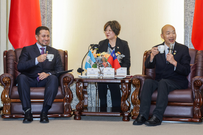 韓國瑜致詞提及,中華民國跟瓜地馬拉雙方的情誼已超過90年,瓜地馬拉跟台灣簽訂自由貿易協定後,雙方的貿易數字激增,且台灣人每喝的10杯咖啡中,就有1杯是瓜地馬拉咖啡。