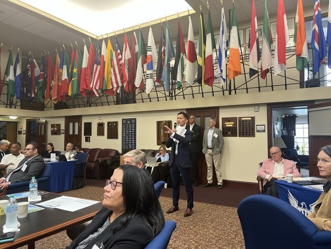 美國海軍戰爭學院基金會(U.S. Naval War College Foundation)21日在位於羅德島州的海軍戰爭學院舉辦台海情境兵推活動,包括校長華克(Darryl Walker)、基金會董事、退役將領、學者及業界代表近百人與會。