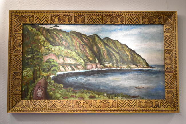 日本山口縣副議長島田教明表示,防府市政府新建物今年1月落成,尤其8樓是市民可以休息與自由來往的地方;雖然這幅「東台灣臨海道路」是複製品,但市府認為新的市政府大樓要在最顯眼的地方放台灣畫家的畫,所以就把它放在這裡。
