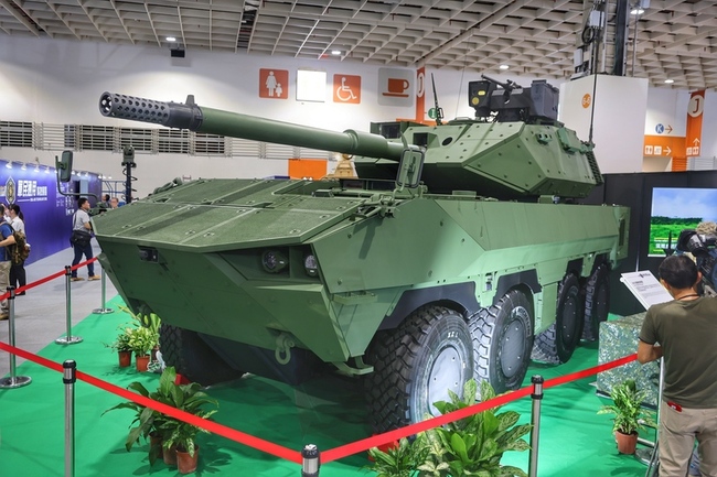 (中央社記者吳書緯、游凱翔台北17日電)兩年一度國防展明天開始,軍備局首度對外亮相105公厘輪型戰車D3樣車,明顯可見車高相比過去曾亮相的D1、D2樣車「變矮」許多,且外型細節更加優化。