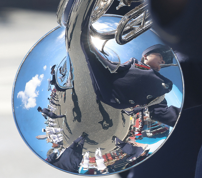 國軍聯合樂隊是由國防部示範樂隊及陸、海、空軍樂隊所編成,其中陸軍軍樂隊的隊長許婕庭,與眾多身材高大的樂儀隊成員,身材相對嬌小的她,反而顯得格外顯眼,舉手投足散發英姿颯爽,也獲得不少鏡頭矚目。