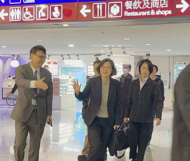 蔡英文今天在桃園機場第一航廈,將搭乘晚間11時10分中華航空CI61班機飛往德國法蘭克福,她在晚間10時10分抵達機場,過程並未受訪,僅向現場媒體微笑揮手致意。